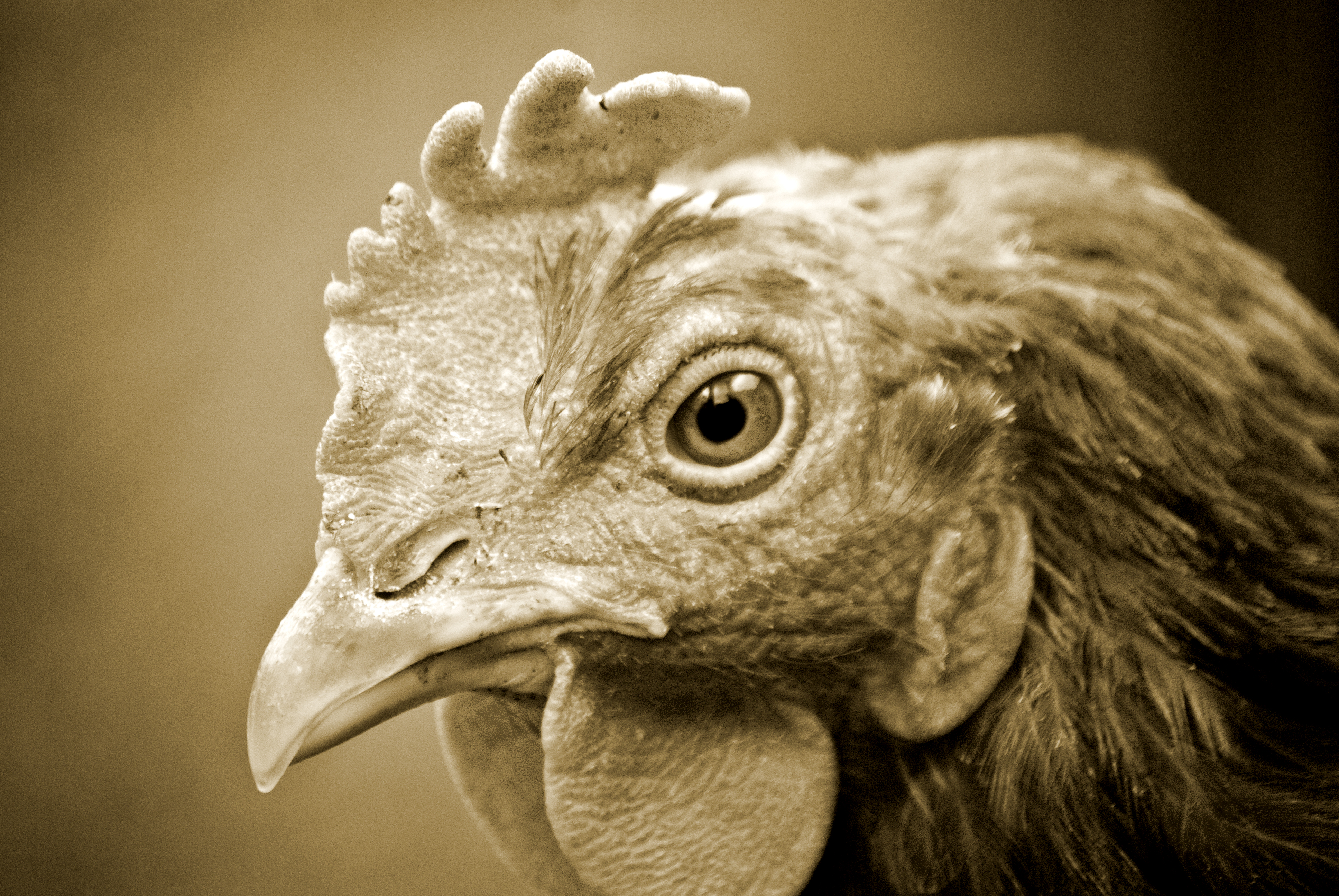 gallina frente a hombre