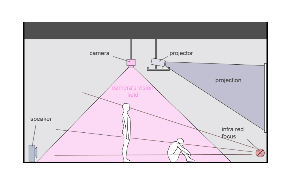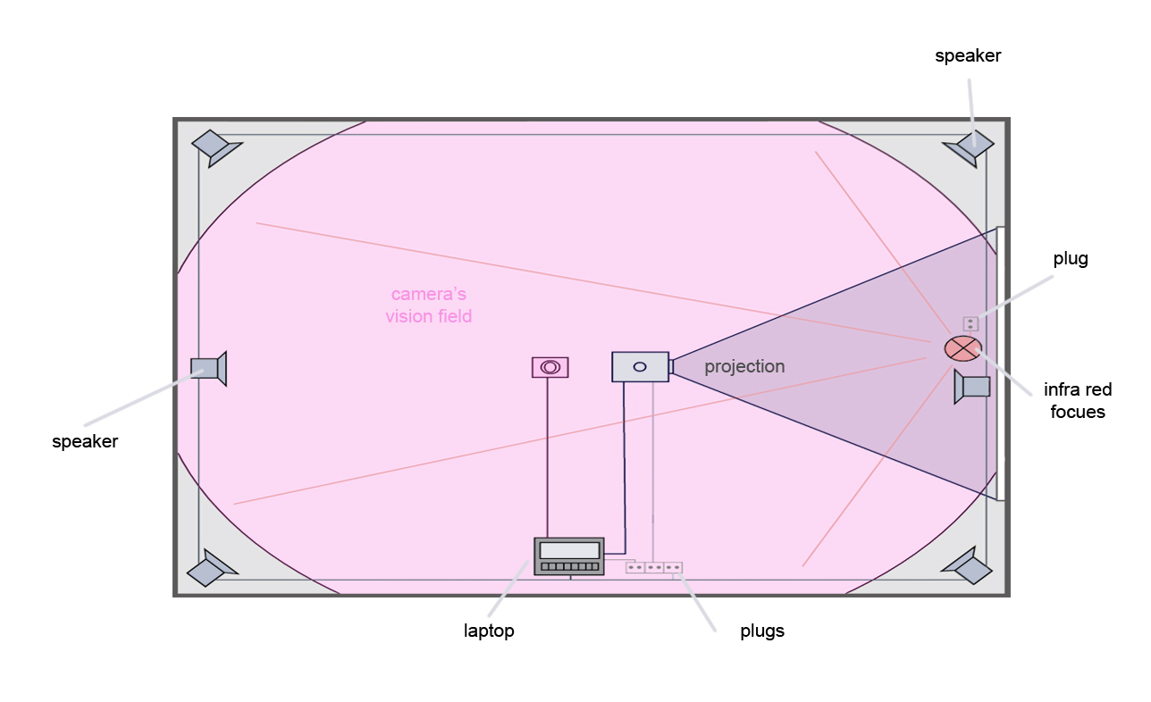 -The movement information happening in the room will be captured using a camera detecting the infra red lights sent by a focus and processed using the VVVV open source program which will manage the data.