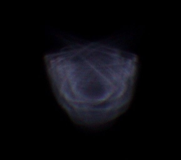 Pulse happens in a dark and empty space, where the image of Osha is projected on one of the walls. The image is a video played in loop of which the changing parameters are the scale and playing speed.
