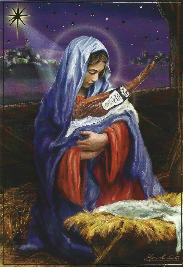 Red street nativity. 11×16,2. Acrylic on digital print.