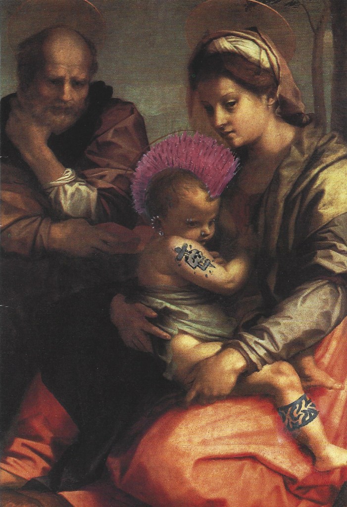 Punk Christ and family. 17×11,4. Acrylic on digital print.